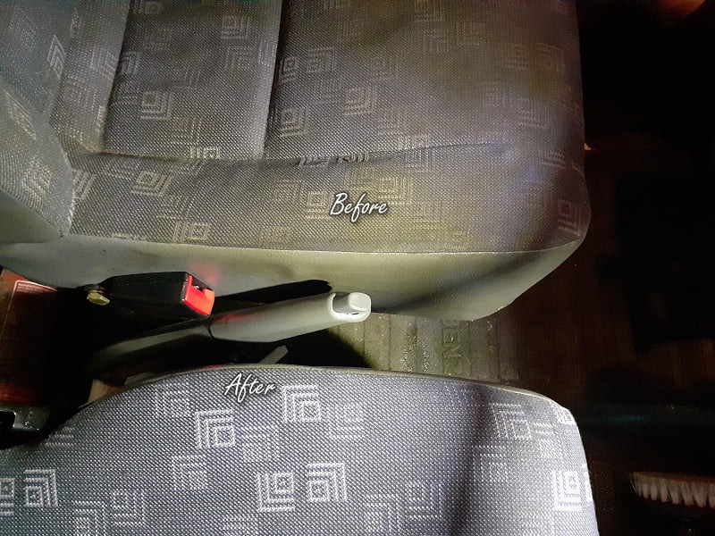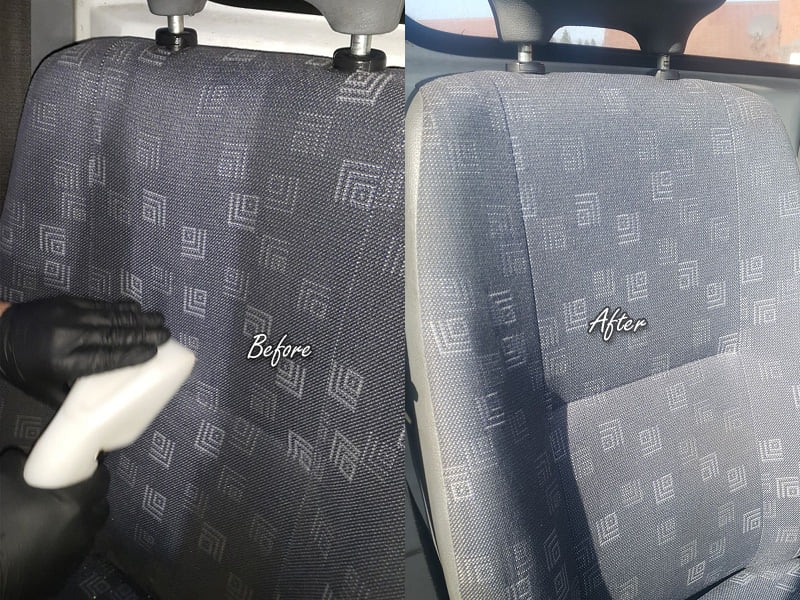 I began this job by thoroughly vacuuming all surfaces to remove larger particles and any hair, paying careful attention to gaps and crevices. Next, I pre-sprayed all surfaces with upholstery cleaner and gently agitated them with a soft brush by hand. The final step involved steam cleaning with thorough extraction, ensuring a meticulous process with overlapping passes to leave no residue behind.